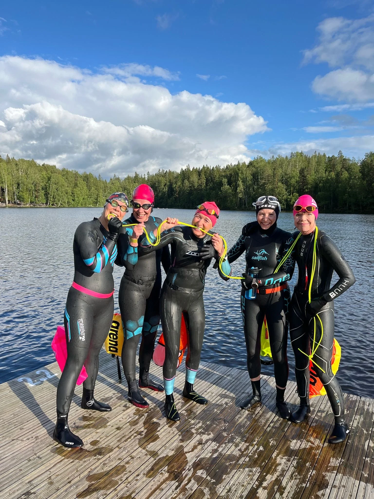 ”Oppimiskäyrä oli kyllä huima, vaikka olen paljon uinutkin”, Leena sanoo ja jatkaa, että valmennus oli ihan parasta mitä tästä maasta voi löytyä. Minna puolestaan kiittää valmentaja Sebastian Dannbergiä uuden näkökulman löytämisestä uintiin, vaikka hän on paljon uinutkin: ”Että aina ei tarvitse sätkiä menemään, uinti voi olla rauhallista ja meditatiivistä.”