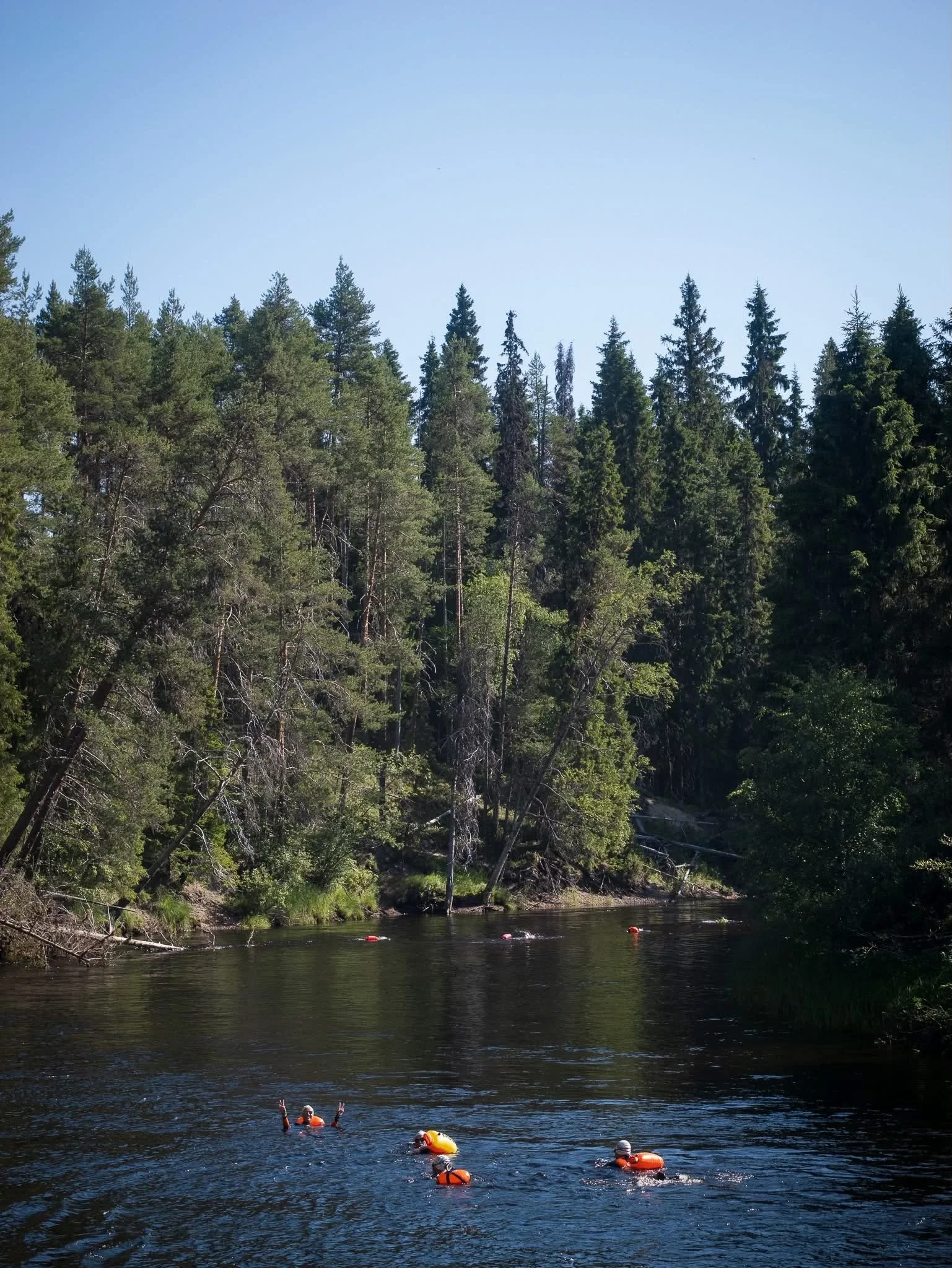 Kati innostui myös liukumisesta ja virtauksista. ” Alun ruuhkan jälkeen sai uida omaa uintia ja tunnustella virtauksia. Joka kerta kun virtauksen tunsi kiihtyvän, tuli riemukas olo, että nyt sitä mennään. Kun vihreät maaliliput tulivat näkyviin, mietin että nytkö jo! Olisin voinut jatkaa pidempäänkin. Tämä oli ihan paras uinti ja luontokokemus ikinä.”